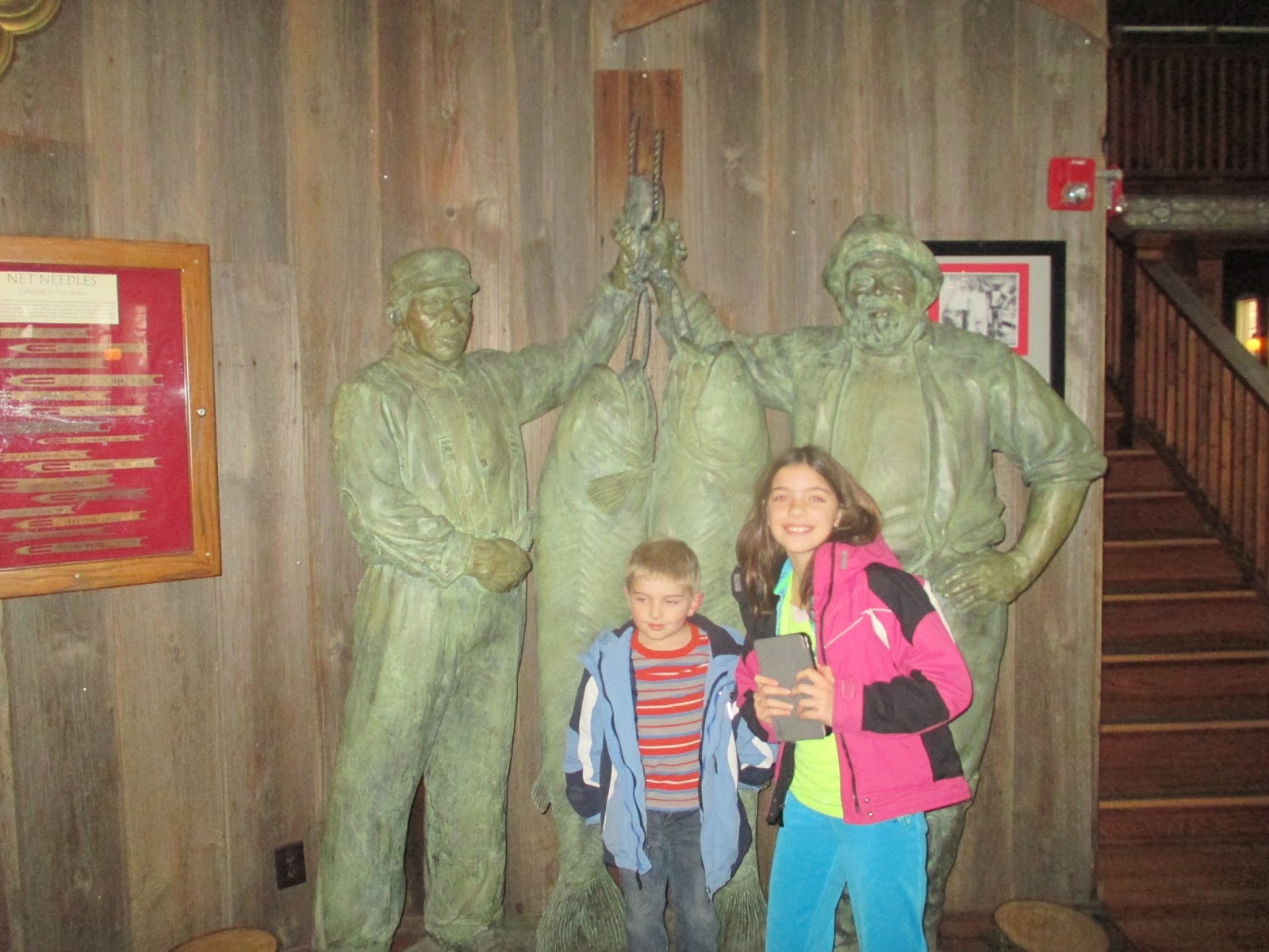 We didn't need a big one and I had the perfect addition to our schedule The Kansas Riverkings museum is located on the Kansas riverfront in Lawrence, KS. To find it you need to go into the Abe and Jake's Landing entertainment center. Abe and Jake's is named for two African-American commercial fishermen who made their living on the river and had shacks just right below the current Abe and Jake's Landing. We got our picture taken with statues of them...