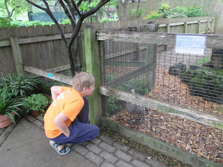We stayed overnight and the next day I was a party pooper mom. I had kiddos who wanted to just swim and I didn't want to deal with wet kids and then jumping in the car for the drive home. I was tired and a bummer. I had one kid especially who let me know their disappointment. So I compromised with a trip to the little playground next to the museum we had been at the day before (it has a lake and geese/ducks too!). One small problem -it was cold and rainy! I had to find a quick fix. So I drove down the road toward home and hatched a plan - the Emporia Zoo! Another exit for us on the turnpike, free and with a playground of its own. Score! We had been last year, but it had brought vows of revisiting so I knew it would be a hit.
